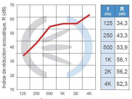 - Certificat acoustique : Valable pour la porte sans accessoires supplémentaires.