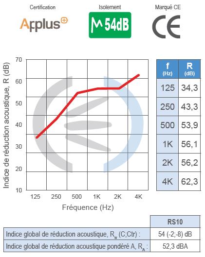 - Certificat acoustique : Valable pour la porte sans accessoires supplémentaires.