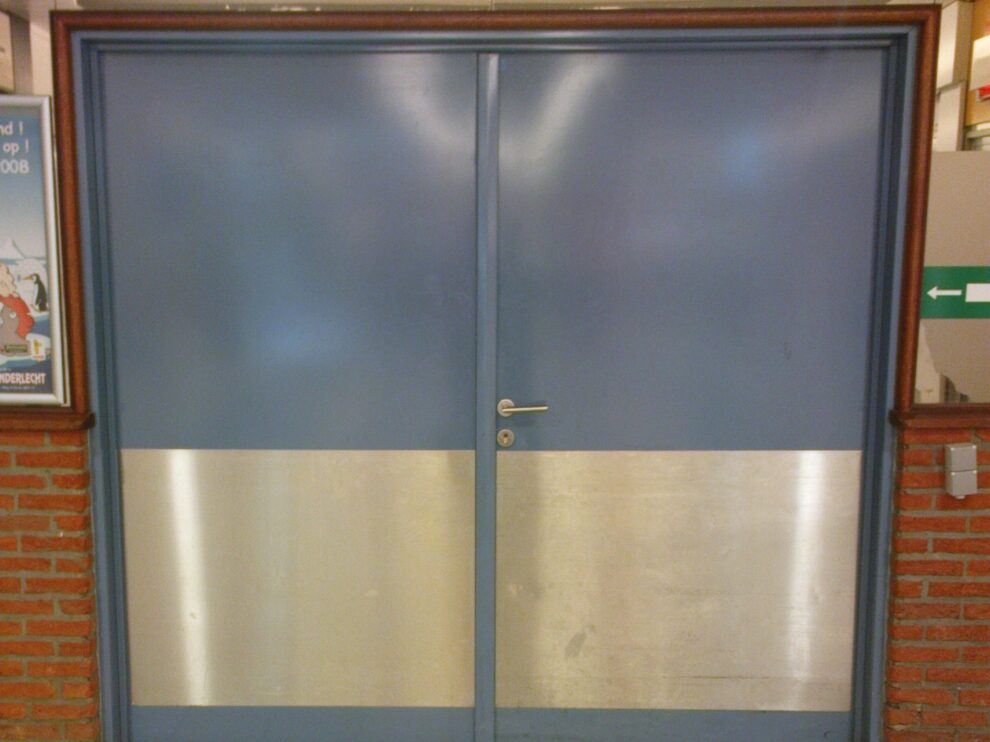 Conception : avec recouvrement sur trois côtés et une épaisseur d’environ 60 mm. Ils sont fabriqués à partir de panneaux de porte pleins à double paroi, constitués de deux tôles électrozinguées de 15/10 par vantail.