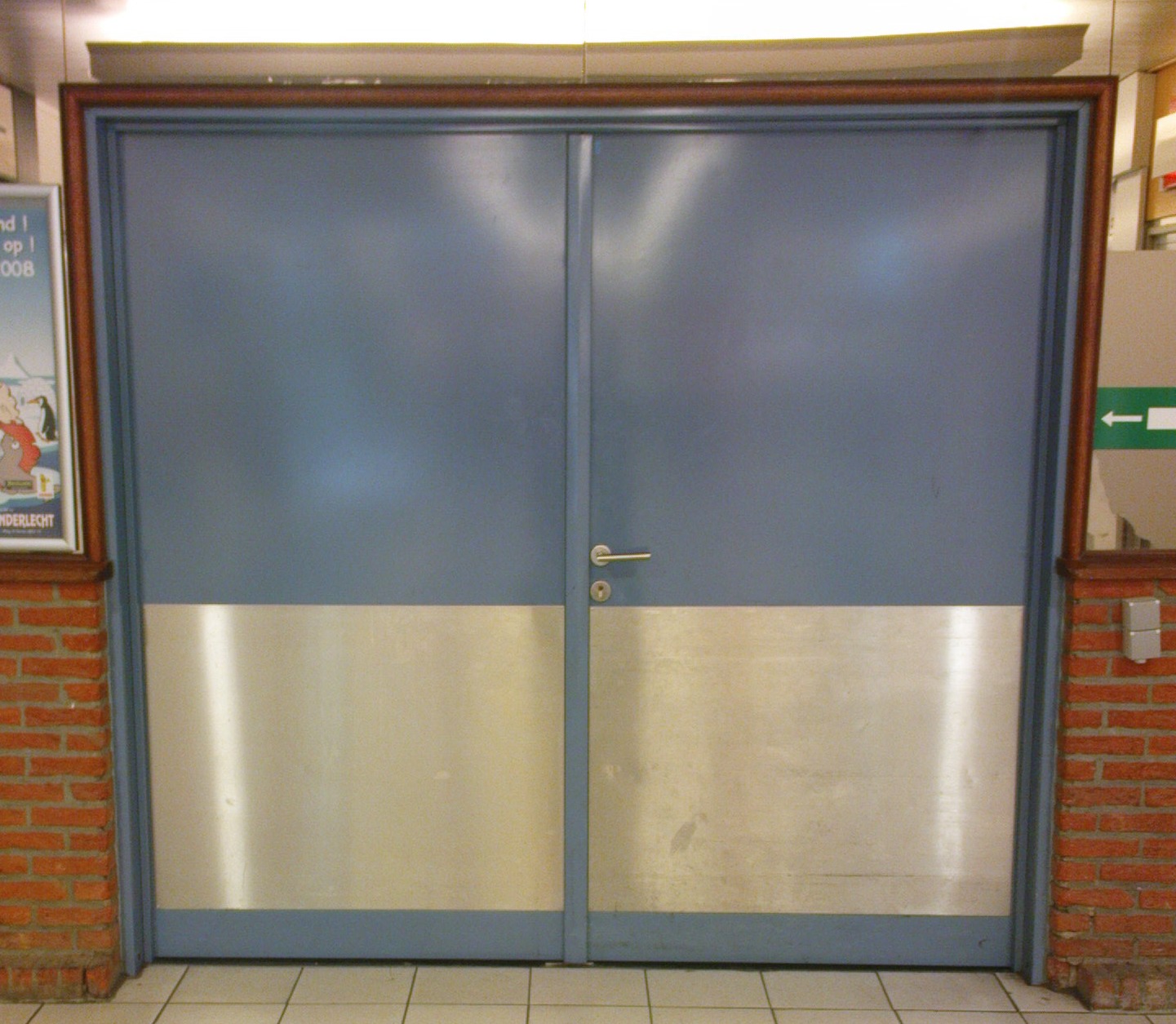 Conception : avec recouvrement sur trois côtés et une épaisseur d’environ 60 mm. Ils sont fabriqués à partir de panneaux de porte pleins à double paroi, constitués de deux tôles électrozinguées de 15/10 par vantail.