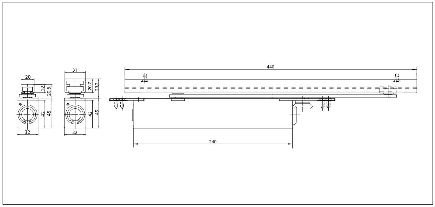 - Intégralement encastré dans le vantail de porte pour les portes avec une largeur de vantail jusqu’à 1400 mm