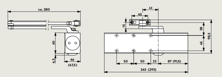 • Conception compacte du ferme-porte et tringlerie plate robuste