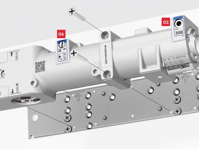 - Force de fermeture réglable en façade avec indicateur visuel de force et tous les réglages en face avant avec valves prisonnières variable de 1 à 6 pour des portes jusqu’à 1.400 mm