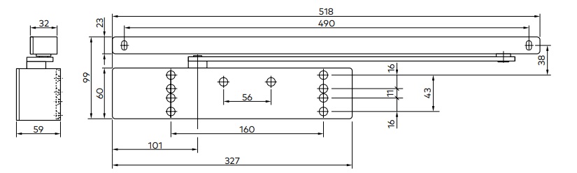 - Fermeture depuis une ouverture de porte de 180° (montage côté charnière)