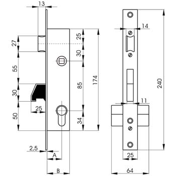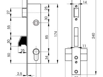 La serrure à crochet Lince Mod. 6570 est à pêne lançant et crochet, adaptée aux cylindres européens.