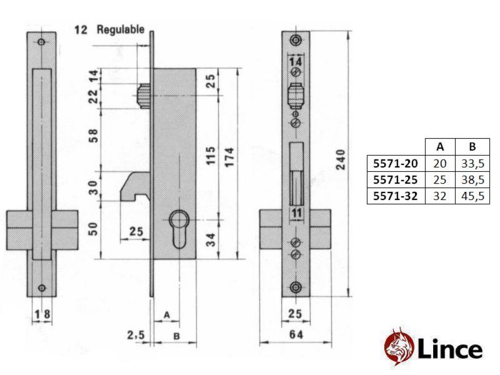 La serrure à crochet Lince Mod. 6571 fait partie de notre gamme de serrures à crochet. Conçue pour s’adapter au cylindre européen à rouleau et crochet.