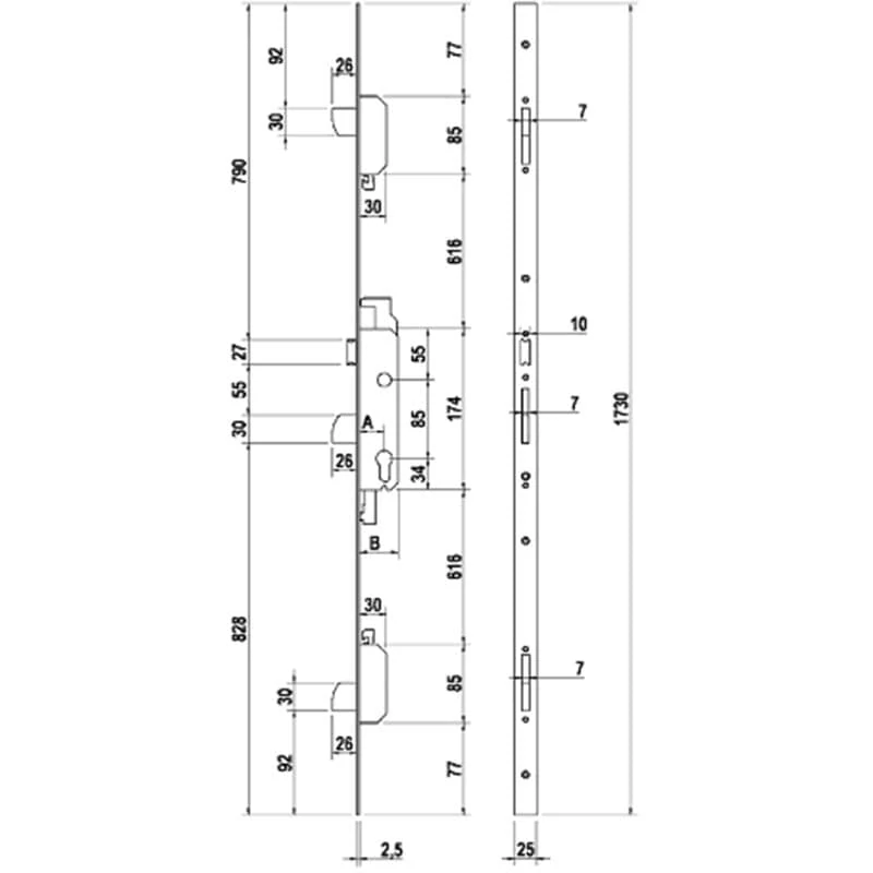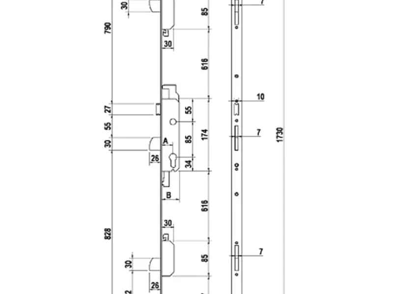 La serrure à crochet Lince Mod. 6570-3h est conçue pour cylindre européen à lançant, crochet et deux déviateurs dormants basculants.