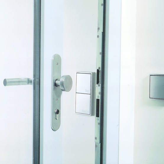 Homologuée selon les normes EN 179 et EN 1125, la serrure blueMotion est disponible dans une version spéciale pour répondre aux exigences de sortie de secours et de sécurité incendie.