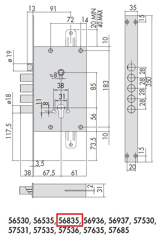 • Type  : Serrure à cylindre européen (PZ – pannetton de 15) et pêne lançant réversible