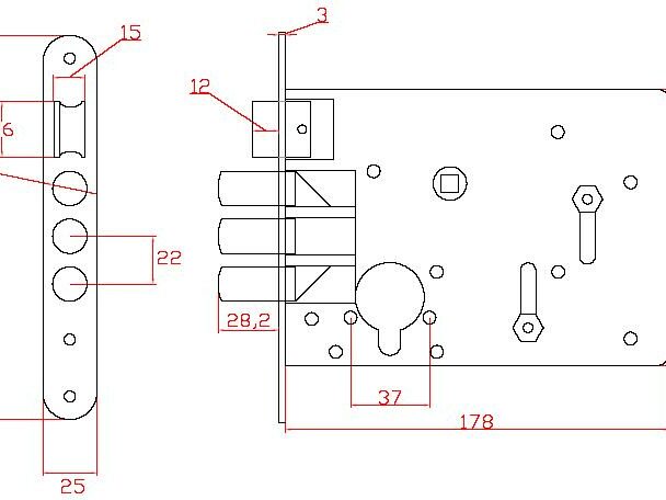 - Pêne dormant central : Trois cylindres de Ø 14 mm