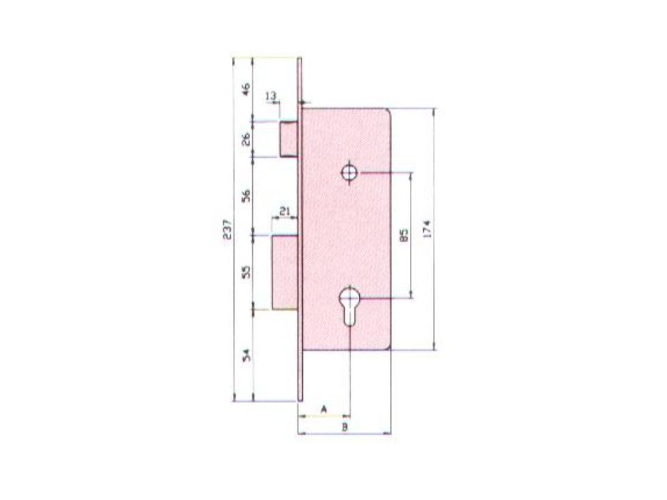 • Pêne dormant central : 20 x 55 x 8 mm, course de 20 mm après deux tours
