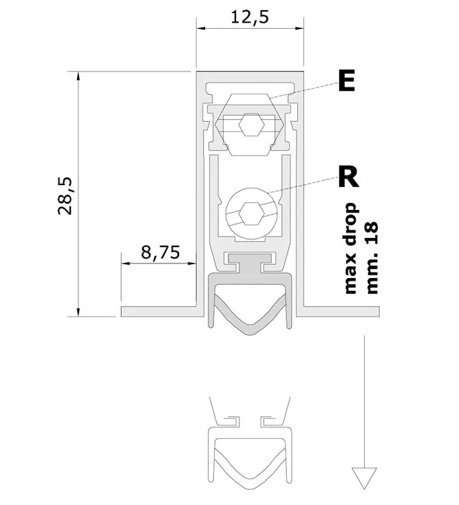 - Têtière U inox 25/10, 8+24+8 x 2100 mm